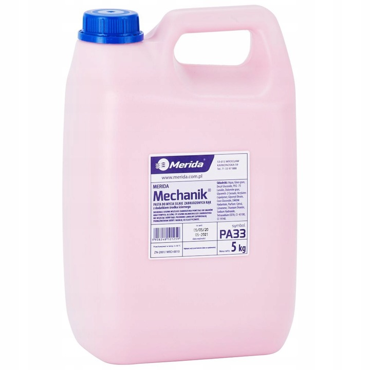 Erősen szennyezett kéztisztító paszta Merida szerelő PA33 5kg. Hatékonyan eltávolít minden szennyeződést, például grafitzsírokat és motorolajokat. Megfelelő állagának köszönhetően könnyen eloszlik a tenyereken. Nem okoz irritációt vagy túlzott bőrszárazságot. Kellemes citromos illata van, amely frissességet ad.