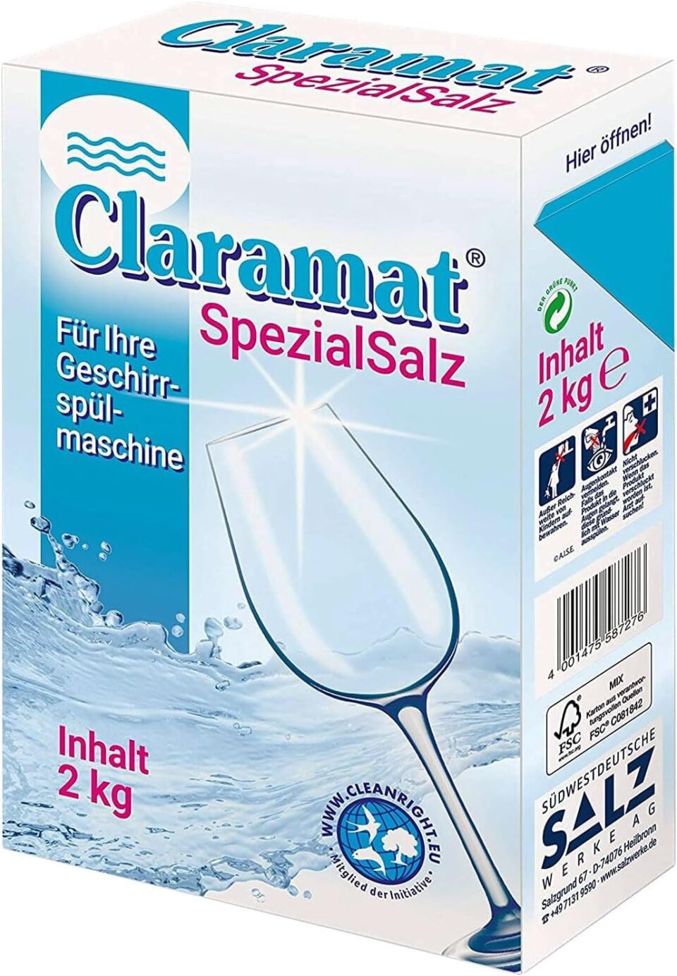 Minőségi német gyártmány. Durva szemcsés, granulátum formájú vízlágyító só. Magas fokú, nagy tisztaságú NaCl tartalom. EasyFill kialakítású papírdoboz csomagolás – a mosogatógép vízlágyító sóval történő utántöltését megkönnyítő, kinyitható adagolódobozban. Mosogatógépekbe a vízkő lerakódás megakadályozására, állagmegóvásra ajánlott.