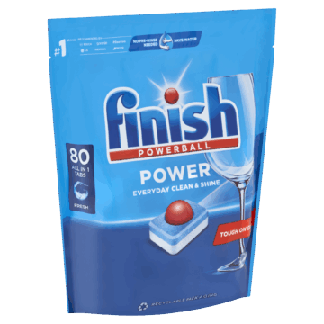 A Finish Power All in 1 Fresh mosogatótabletta hatékonysága már az első mosogatás után biztosítja a mindennapi csillogást és tisztaságot. A Finish Powerball lemossa az ételmaradékot, tisztaságot és ragyogást biztosít az edényeknek. 80db-os kiszerelés.