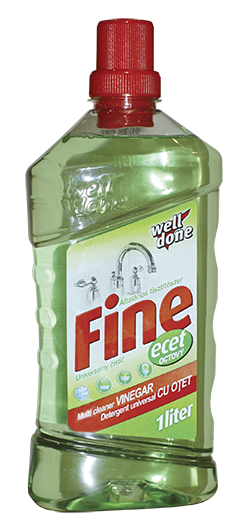 Well Done Fine Multi Cleaner ecetes általános tisztítószer hatékonyan alkalmazható az egész lakásban. Eltávolítja a vízkövet, vízcseppfoltokat, szappanlerakódásokat és a kellemetlen szagokat.